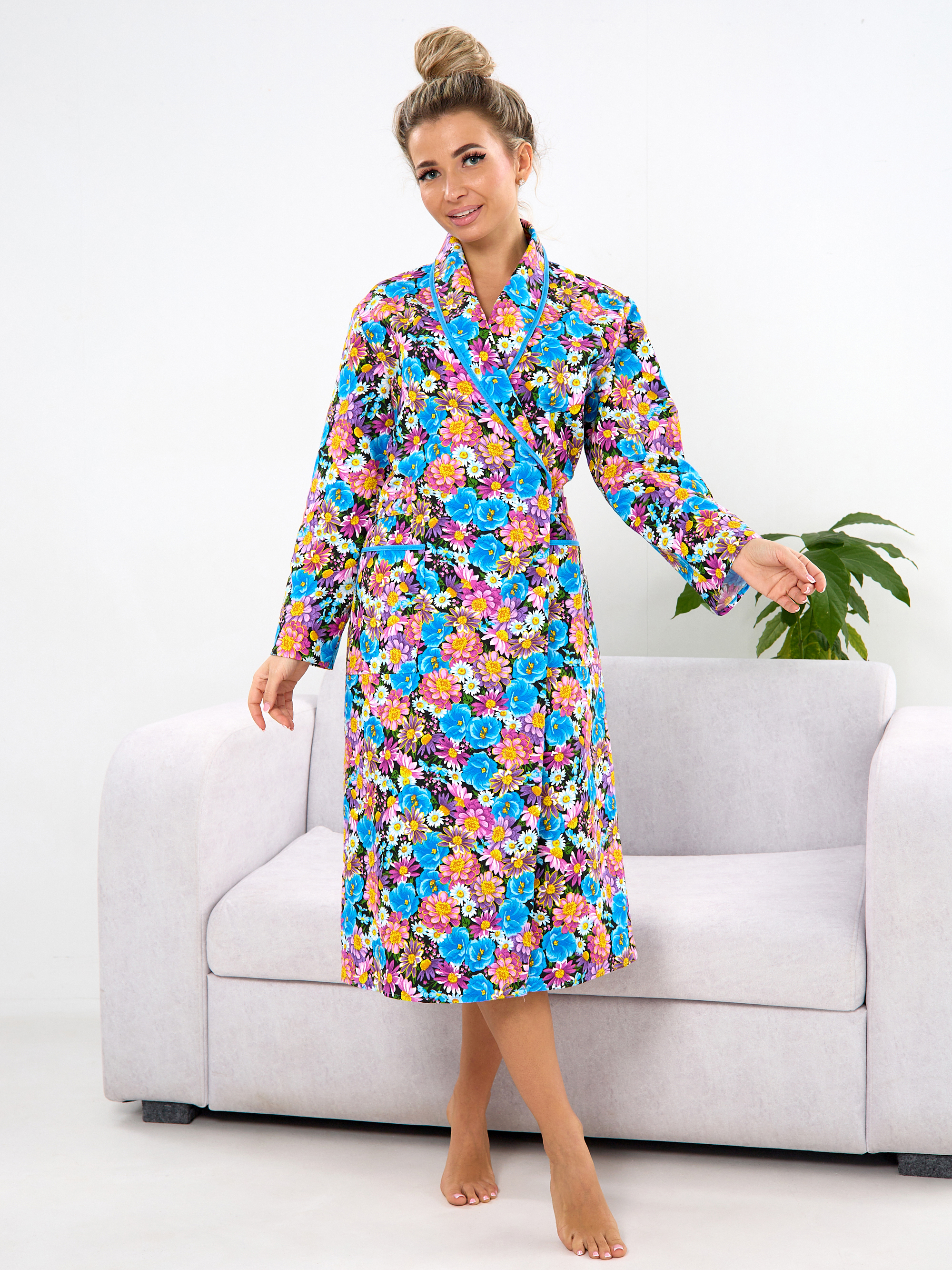 Главная Женская одежда Фланель Халат фланель м10 цветы